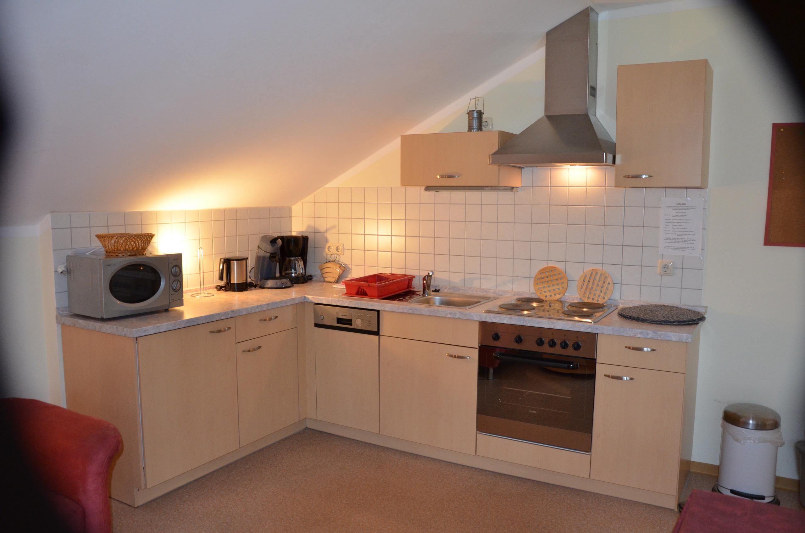 Unsere helle und gemütliche Ferienwohnung 3 bietet Platz für 2 Personen. Ein Zustellbett ist im Schlafzimmer möglich.(90x200) Somit kann auf drei Personen erweitert werden. Auch ein Kinderbett ist möglich. Die Wohnung verfügt über eine komplett eingerichtete Küchenzeile mit Spülmaschiene, Mikrowelle, Herd mit Backofen, Wasserkocher und Toaster . In der gemütlichen Wohnecke mit Ausziehcouch und SAT/TV lässt es sich entspannen. Ein großes Schlafzimmer mit D/WC steht zur Verfügung. Auf dem großen sonnigen Balkon mit Gartenmöbel und Blick in den Garten und die Natur können sie den Urlaub genießen. Es ist auch ein Zusatzzimmer neben der Wohnung zubuchbar. (mit Fernseher, eigener D/WC, und Balkon) geeignet für größere Kinder die alleine schlafen, Oma oder Opa und Freunde die Ihr eigenes Reich möchten.